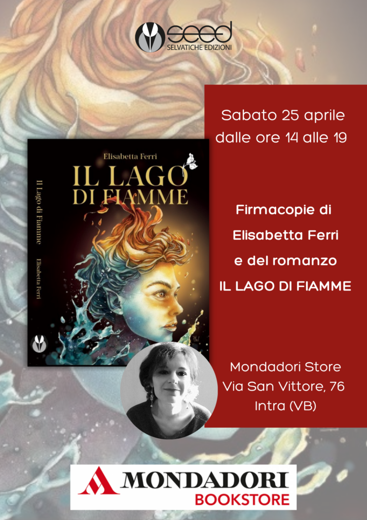 Firmacopie de IL LAGO DI FIAMME, sabato 25 aprile, dalle ore 14 alle 19, Mondadori di Verbania, firmacopie